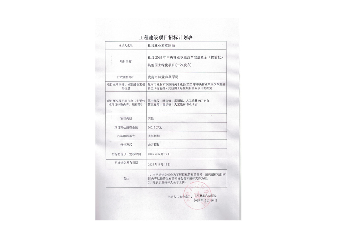 禮縣2025年中央林業(yè)草原改革發(fā)展資金(提前批)其他國(guó)土綠化項(xiàng)目