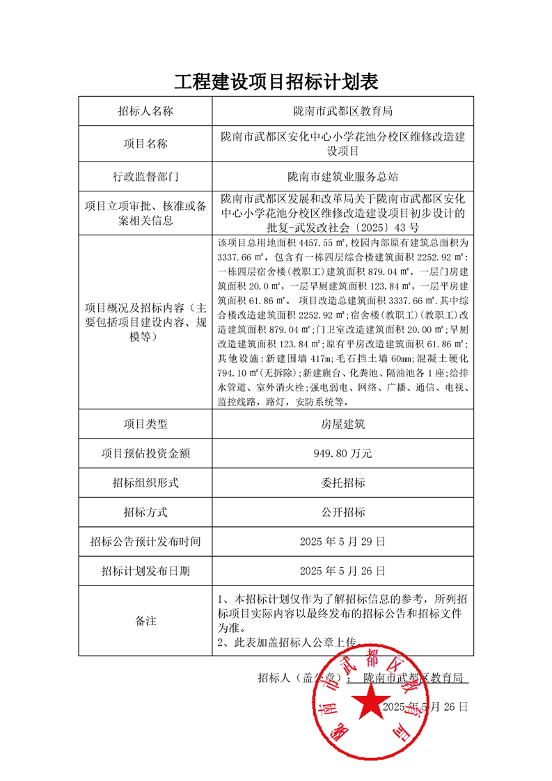 隴南市武都區(qū)安化中心小學(xué)花池分校區(qū)維修改造建設(shè)項目