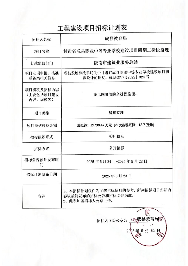 甘肅省成縣職業(yè)中等專業(yè)學校建設項目四期二標段監(jiān)理