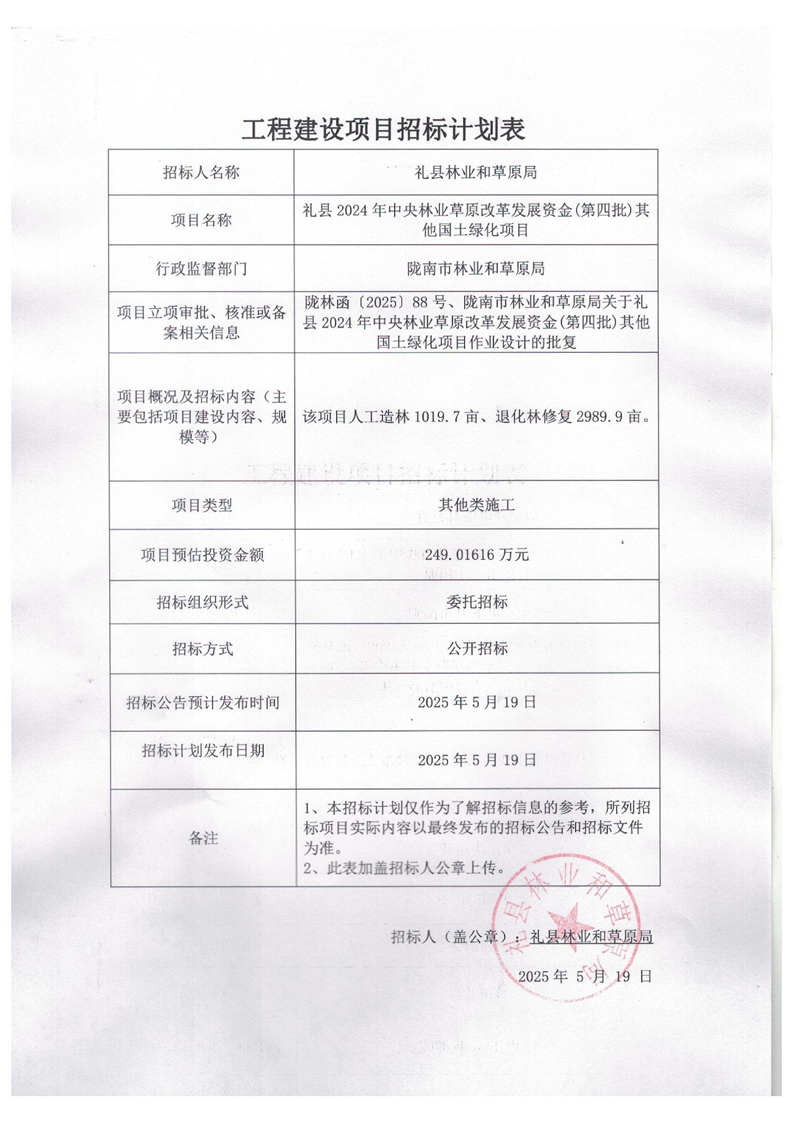 禮縣2024年中央林業(yè)草原改革發(fā)展資金(第四批)其他國(guó)土綠化項(xiàng)目