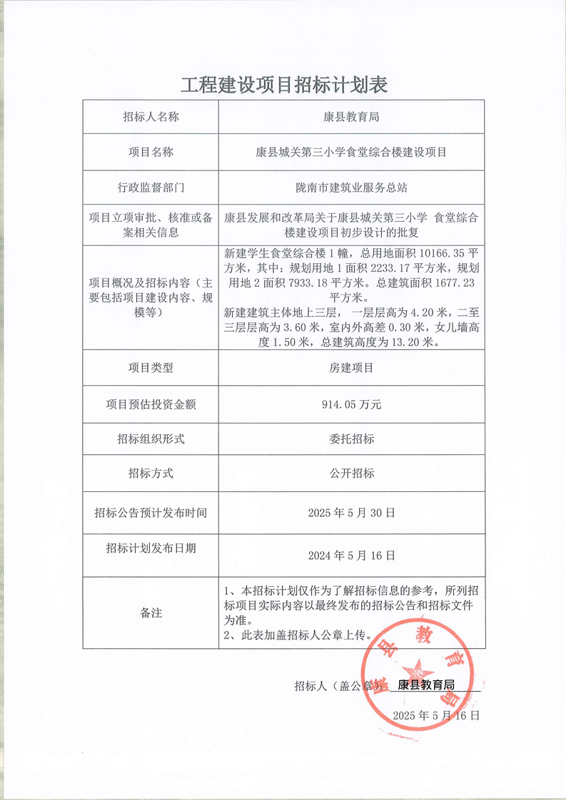康縣城關(guān)第三小學(xué)食堂綜合樓建設(shè)項(xiàng)目
