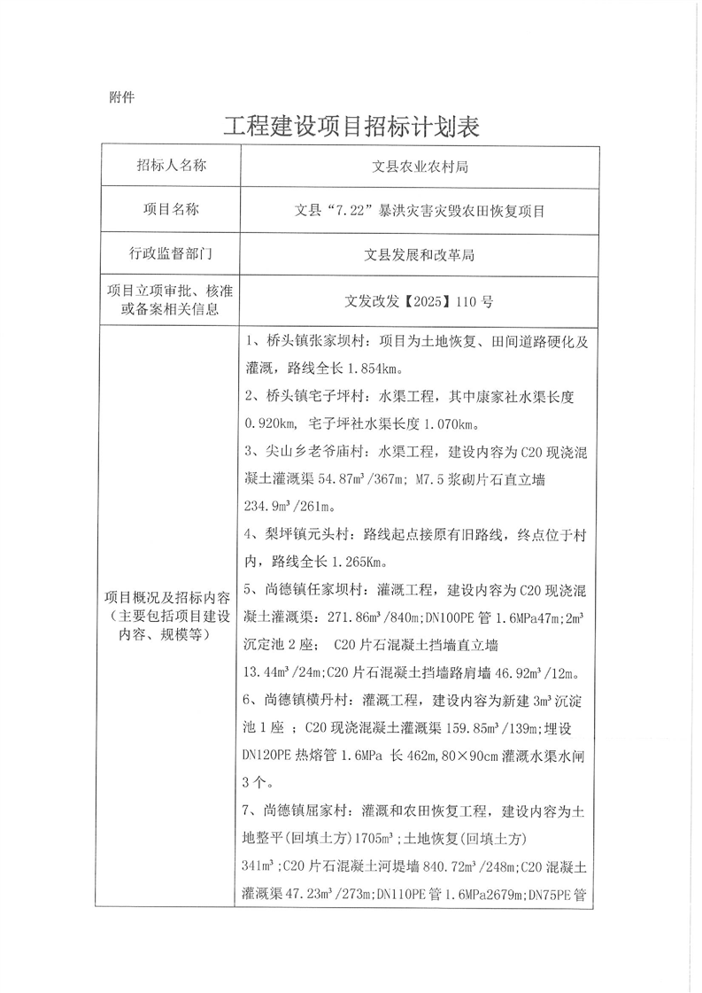 文縣“7.22”暴洪災(zāi)害災(zāi)毀農(nóng)田恢復(fù)項(xiàng)目