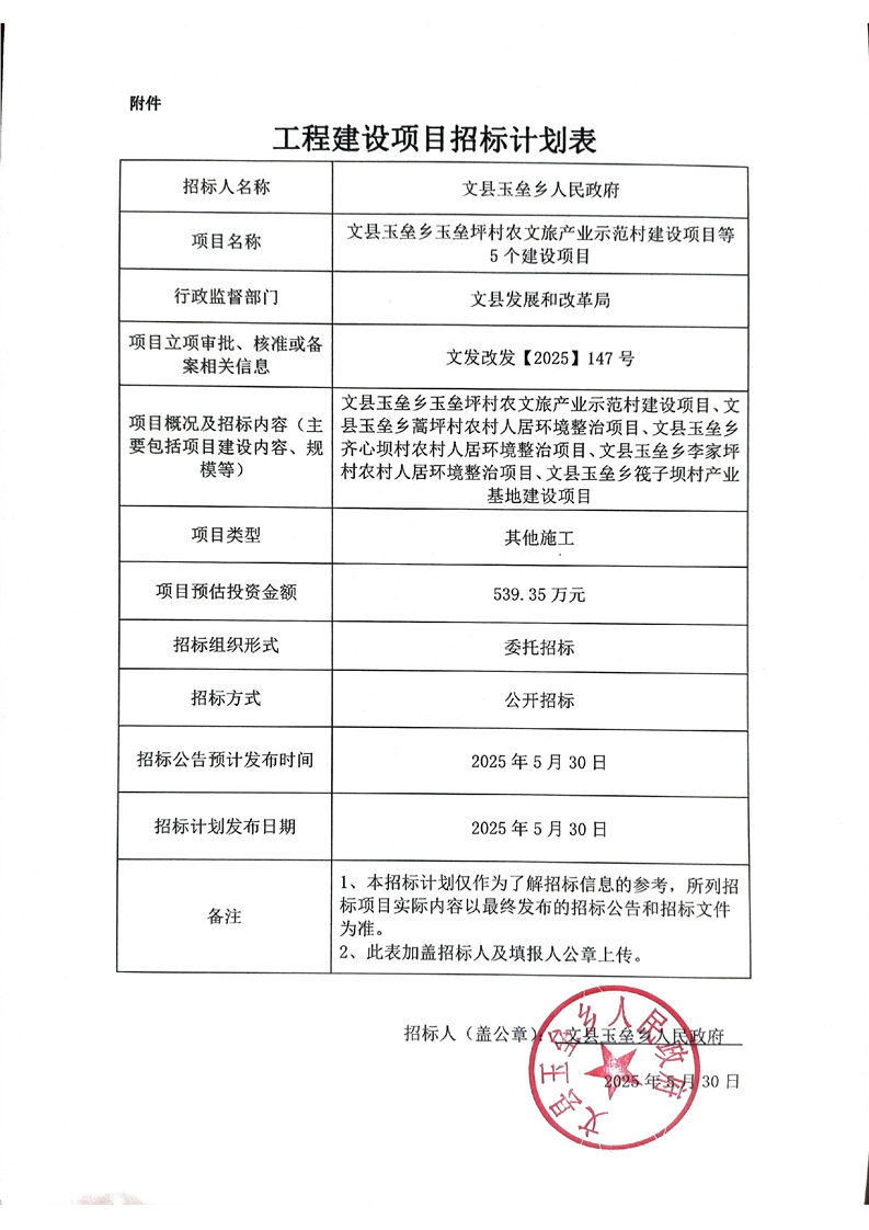 文縣玉壘鄉(xiāng)玉壘坪村農文旅產業(yè)示范村建設項目等5個建設項目