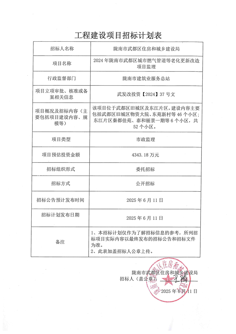 2024年隴南市武都區(qū)城市燃氣管道等老化更新改造項目監(jiān)理