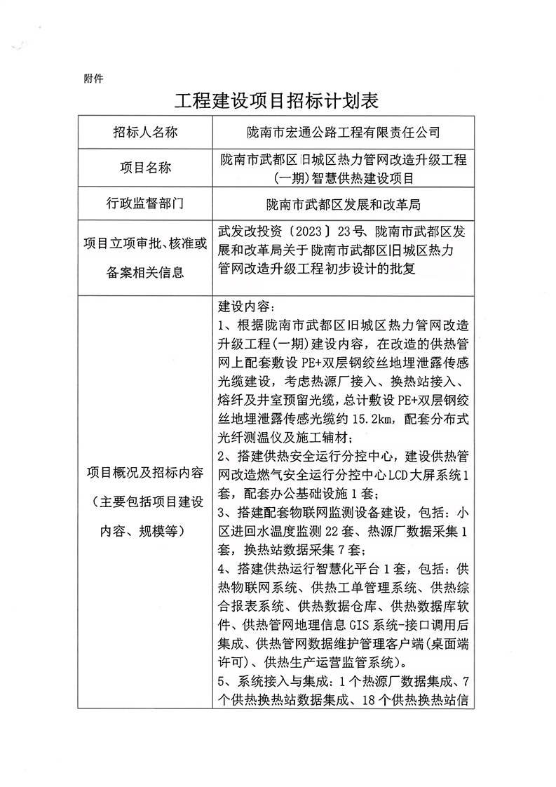隴南市武都區(qū)舊城區(qū)熱力管網(wǎng)改造升級工程(一期)智慧供熱建設(shè)項目