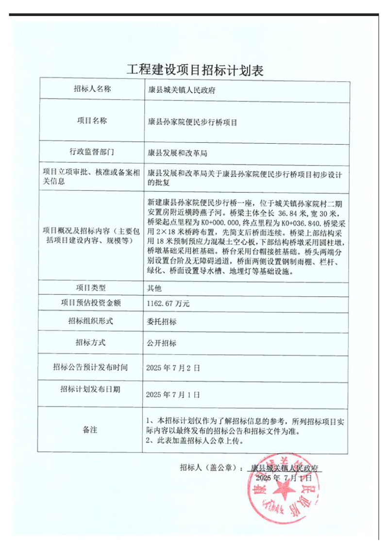 康縣孫家院便民步行橋項目
