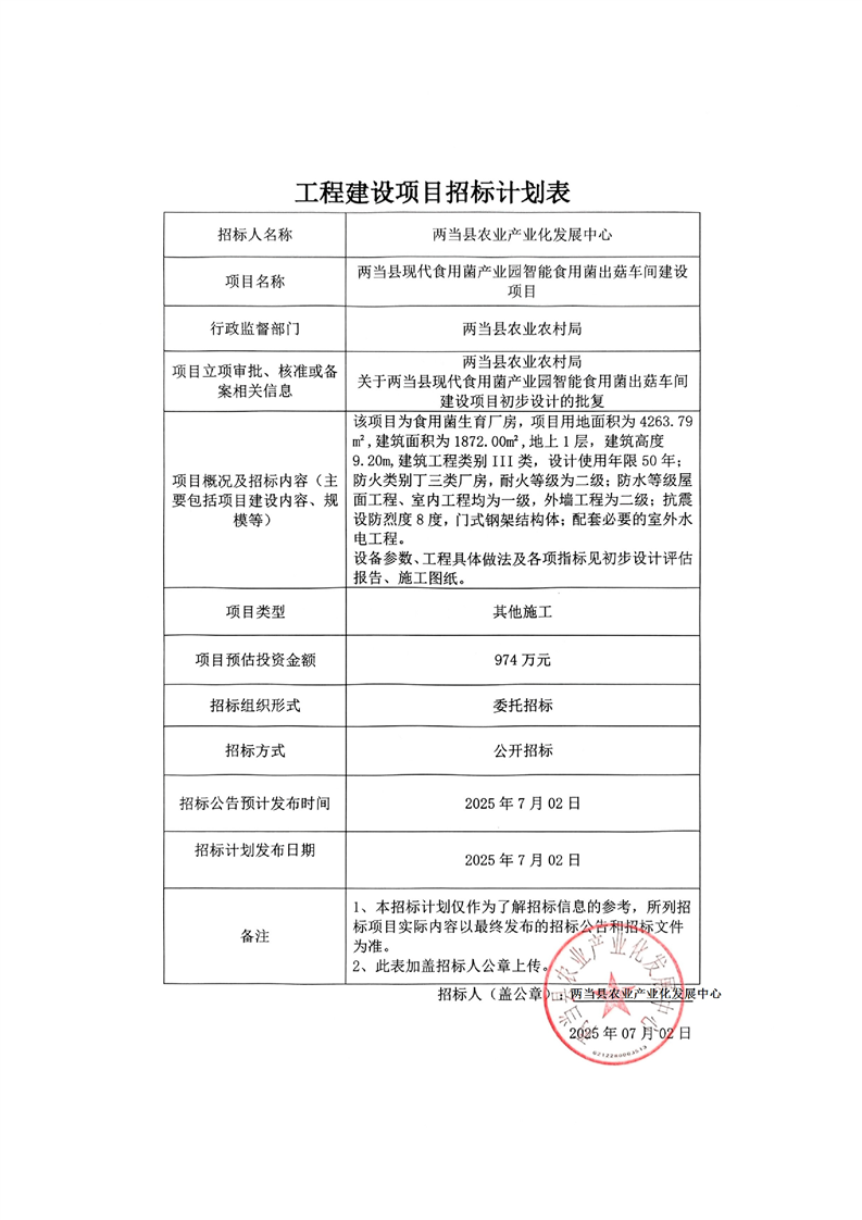 兩當(dāng)縣現(xiàn)代食用菌產(chǎn)業(yè)園智能食用菌出菇車間建設(shè)項(xiàng)目