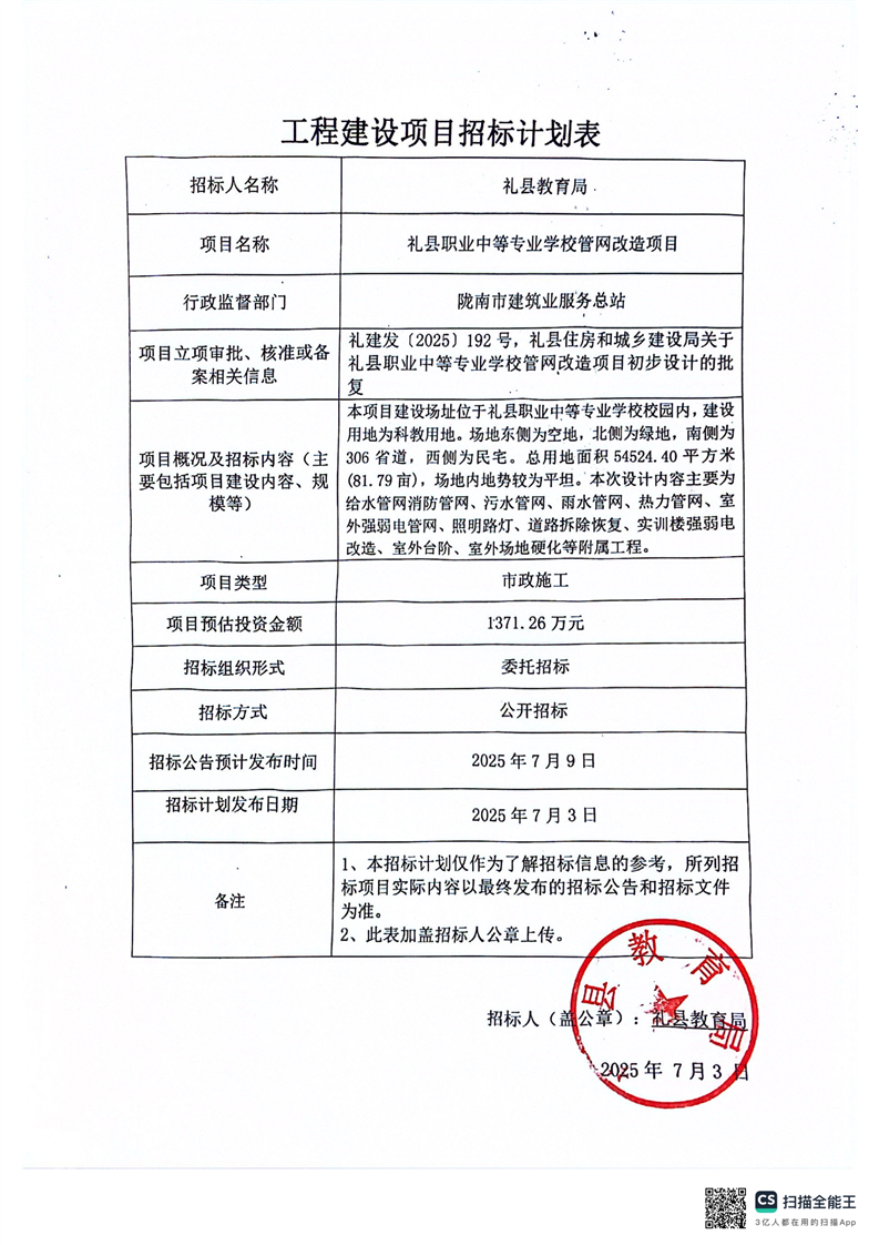 禮縣職業(yè)中等專業(yè)學(xué)校管網(wǎng)改造項(xiàng)目