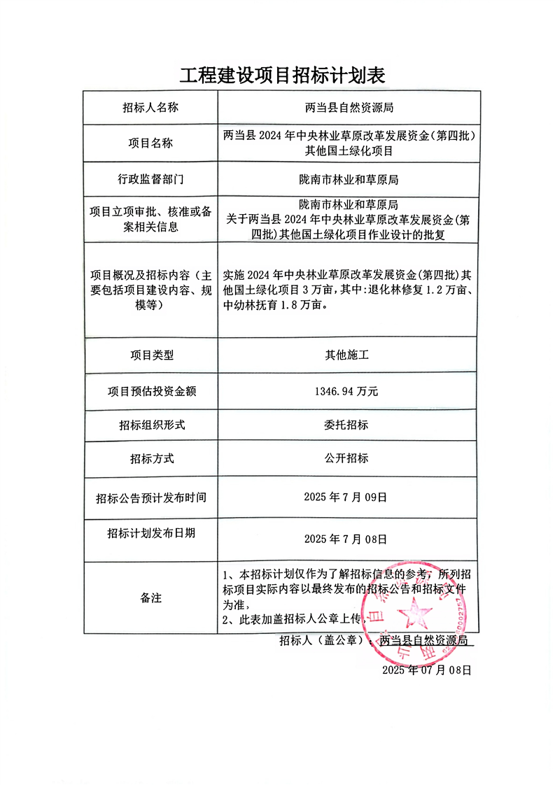 兩當(dāng)縣2024年中央林業(yè)草原改革發(fā)展資金(第四批)其他國土綠化項(xiàng)目