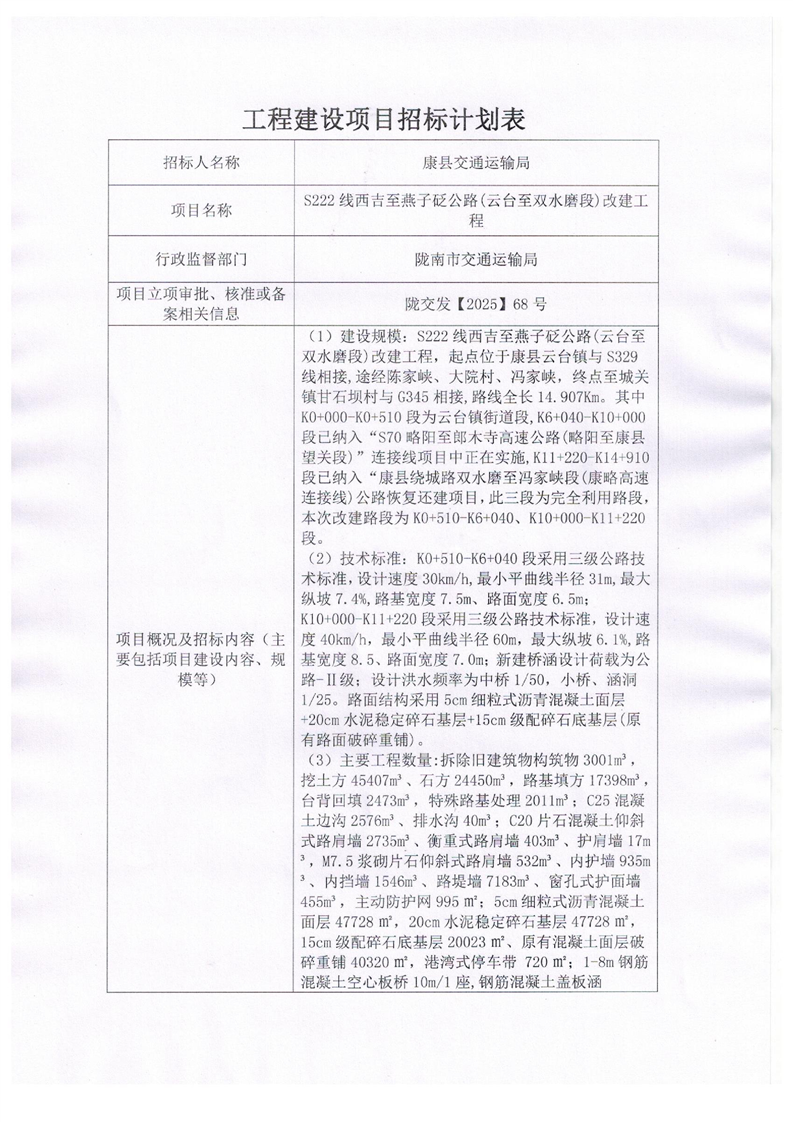工程建設(shè)項目招標(biāo)計劃表--S222線西吉至燕子砭公路(云臺至雙水磨段)改建工程.pdf
