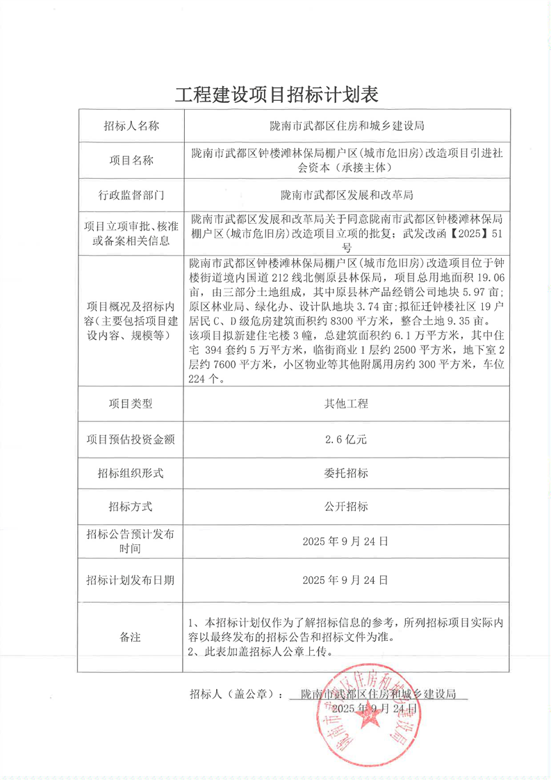 隴南市武都區(qū)鐘樓灘林保局棚戶區(qū)(城市危舊房)改造項(xiàng)目引進(jìn)社會資本(承接主體)