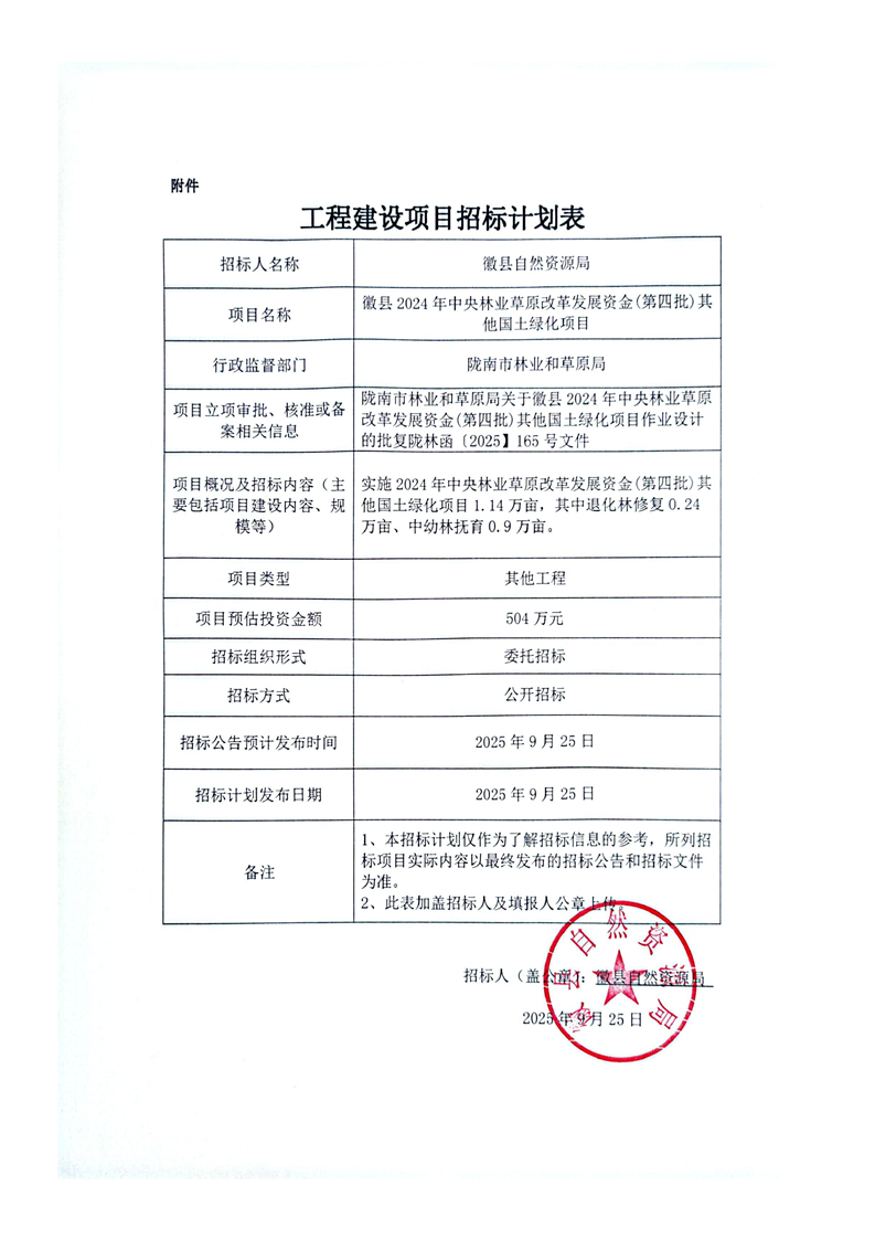 徽縣2024年中央林業(yè)草原改革發(fā)展資金(第四批)其他國(guó)土綠化項(xiàng)目