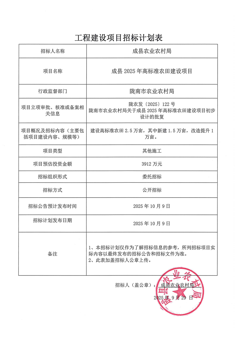 成縣2025年高標準農(nóng)田建設(shè)項目