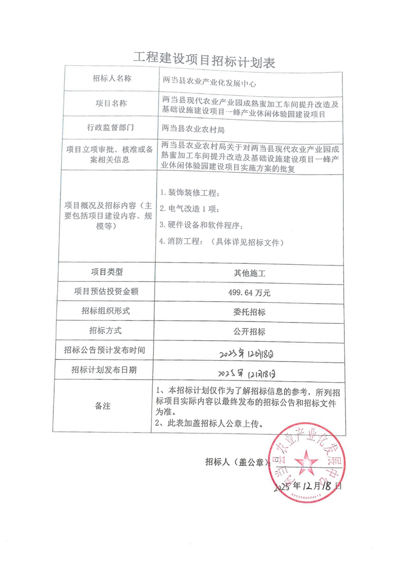 兩當縣現(xiàn)代農(nóng)業(yè)產(chǎn)業(yè)園成熟蜜加工車間提升改造及基礎設施建設項目一蜂產(chǎn)業(yè)休閑體驗園建設項目