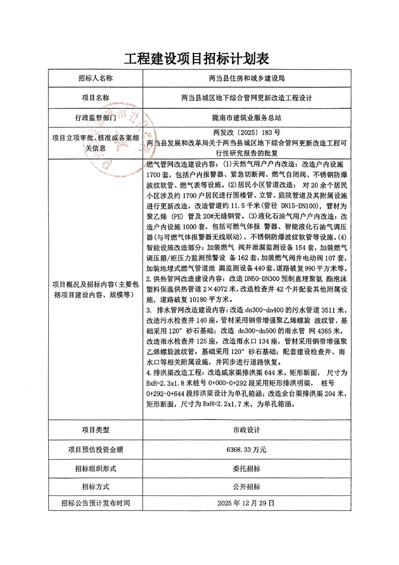 兩當(dāng)縣城區(qū)地下綜合管網(wǎng)更新改造工程設(shè)計(jì)