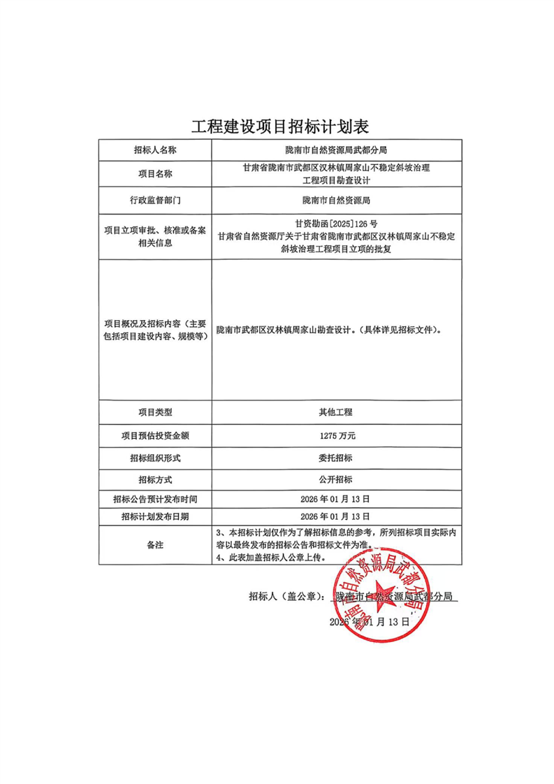 隴南市武都區(qū)漢林鎮(zhèn)周家山不穩(wěn)定斜坡治理工程項目勘查設計