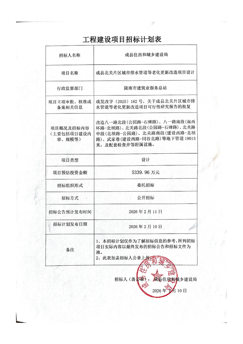成縣北關片區(qū)城市排水管道等老化更新改造項目設計