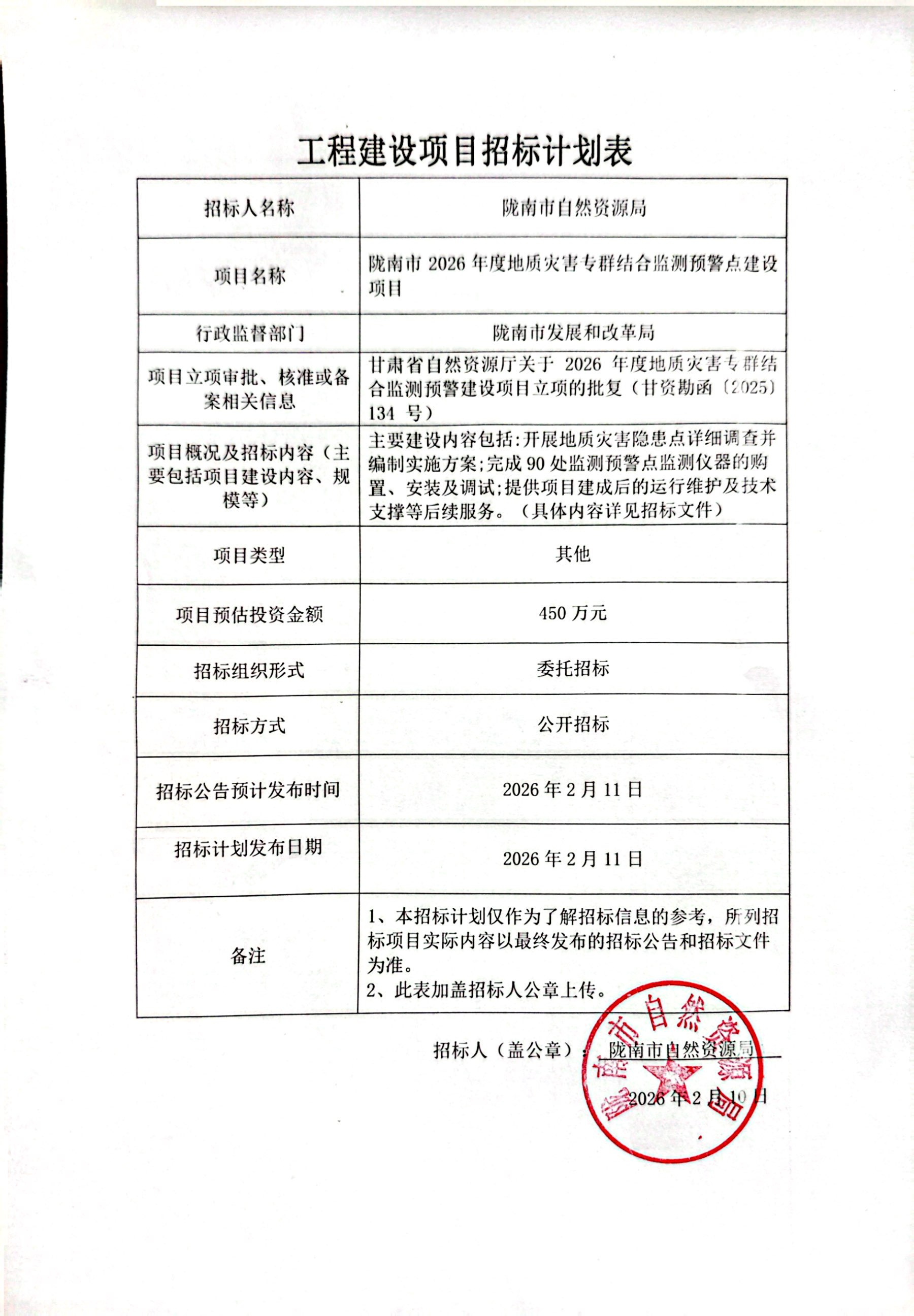 隴南市2026年度地質(zhì)災(zāi)害專群結(jié)合監(jiān)測(cè)預(yù)警點(diǎn)建設(shè)項(xiàng)目