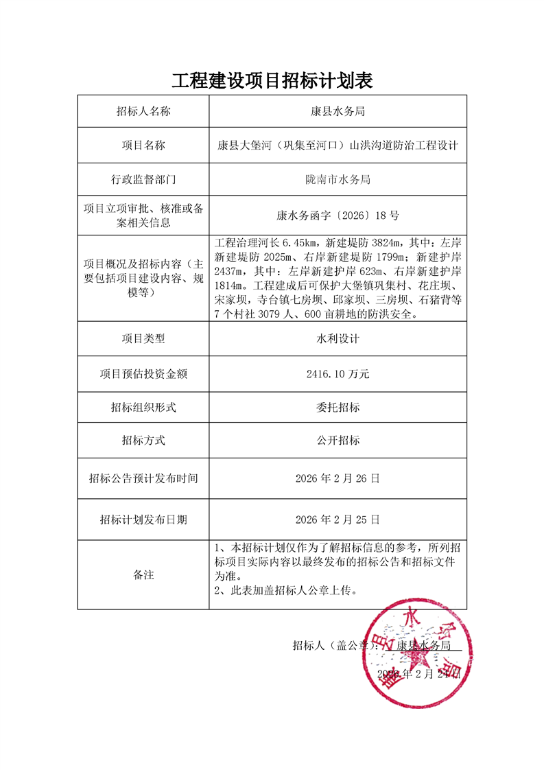 康縣大堡河(鞏集至河口)山洪溝道防治工程設計