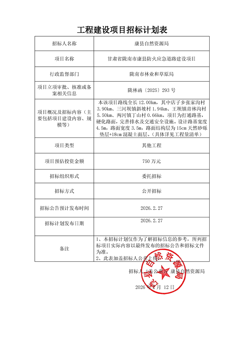甘肅省隴南市康縣防火應(yīng)急道路建設(shè)項(xiàng)目